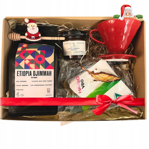BOX ZESTAW PREZENTOWY ŚWIĄTECZNY prezent kawa konfitura KRAFT driper filtry