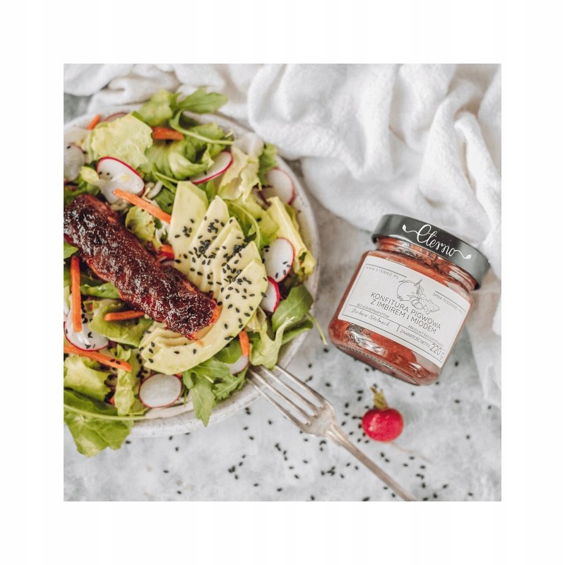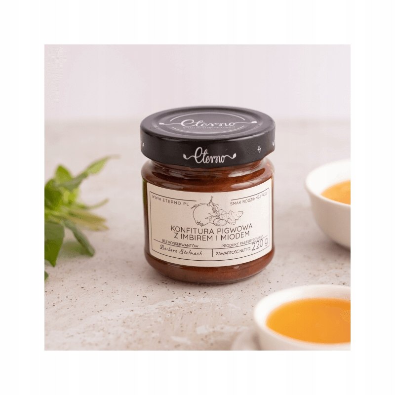 Pigwa z imbirem i miodem przygotowywana jest według babcinych przepisów, łącząc aromatyczną pigwę, ostry imbir i miód, tworząc intensywny smak i zapach.