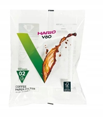 Zestaw 100 sztuk papierowych filtrów do dripa o rozmiarze V60-02 japońskiego producenta Hario.