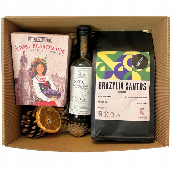 Zestaw KOSZ PREZENTOWY Upominek Kawa Smakowa 250g Syrop Śliwki Krakowskie