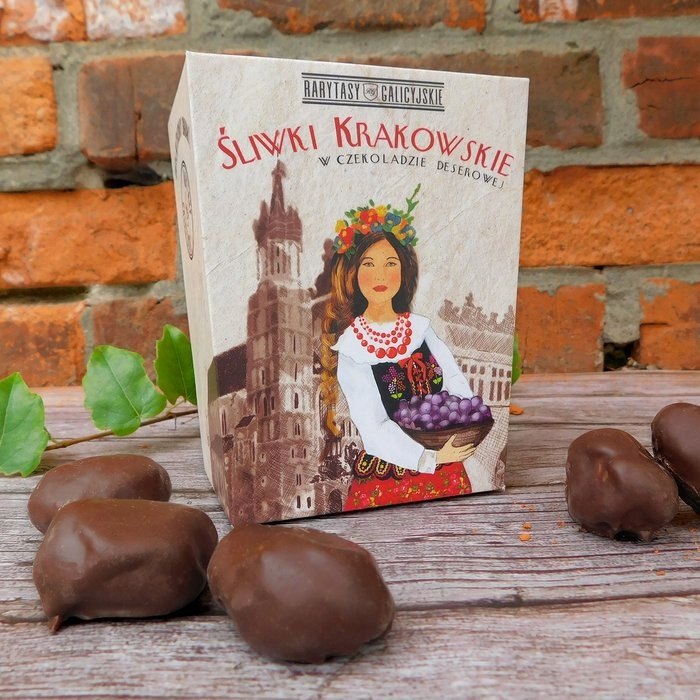 Tajemnica Śliwki Krakowskiej tkwi w galicyjskiej recepturze i połączeniu wysokiej jakości składników. Kandyzowane śliwki z belgijską czekoladą deserową tworzą intensywny, bogaty smak.